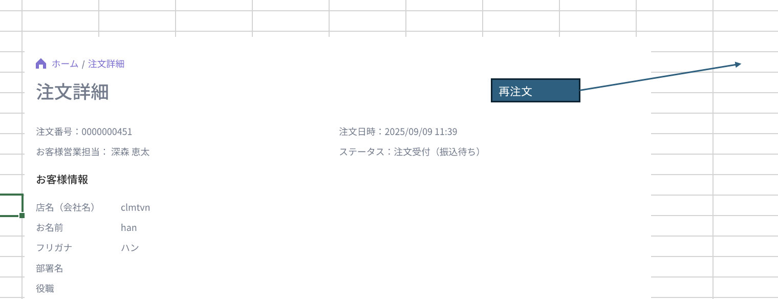 過去注文の再利用ボタンを追加したい。※No17後に対応すれば ユーザー 注文明細のみでよい