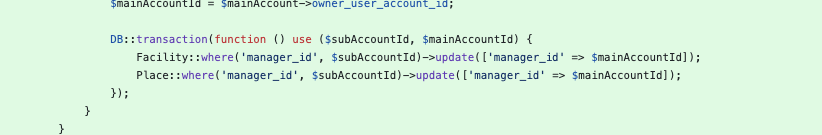 Khi 1 sub-account bị xóa, nếu nó là place manager hoặc facility manager (管理担当者) thì assign facility/place đó qua cho main account.