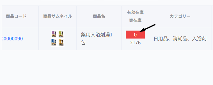 有効在庫 = 0 -> background đỏ, chữ trắng, to hơn 1 size