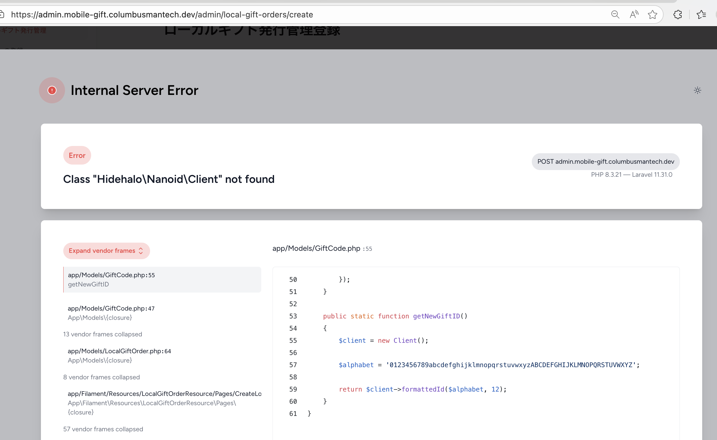openAdmin-màn hình tạo issue gift, báo lỗi khi save