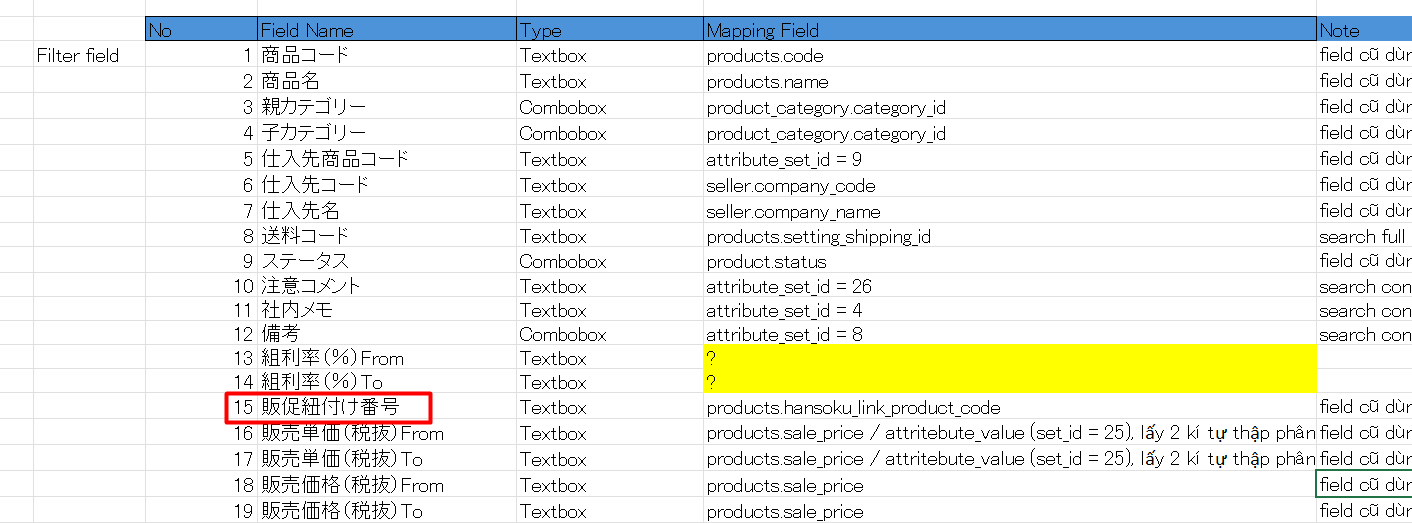-Hiện tại field đang nằm sai vị trí (nằm tại field số 10) -> thay đổi thành vị trí số 15 giống trong doc, nằm bên phải của field **組利率(%)To