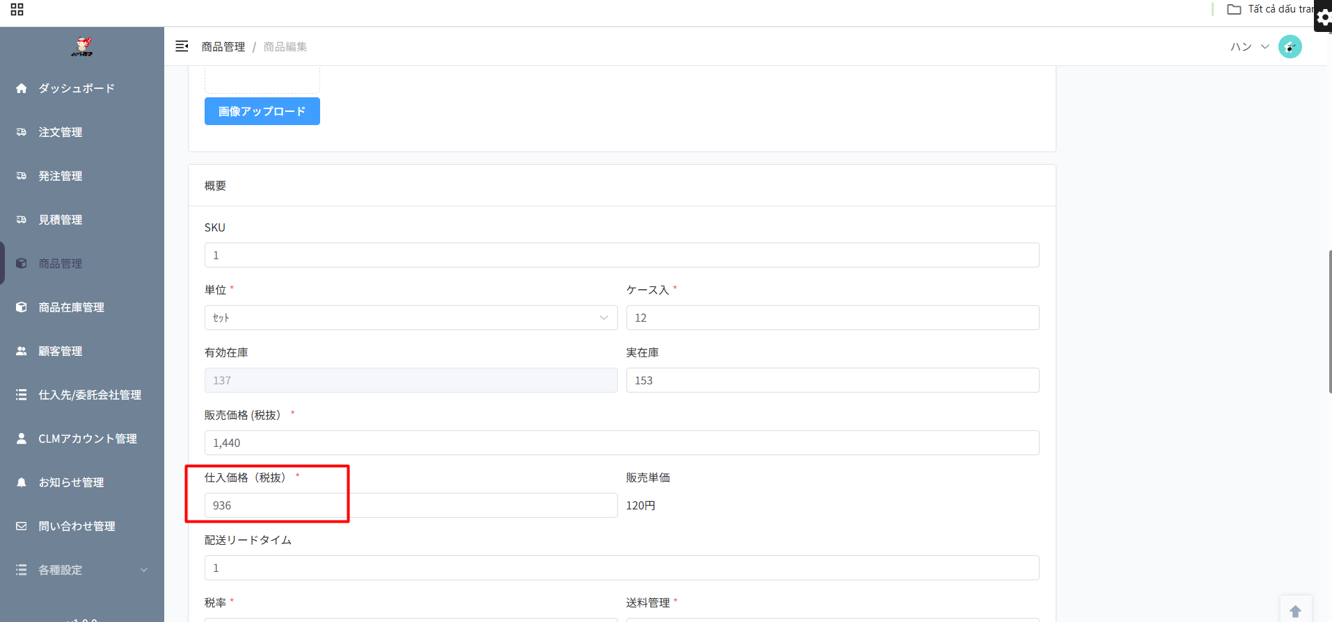 Filter 仕入価格(税抜) hiển thị thiếu kết quả