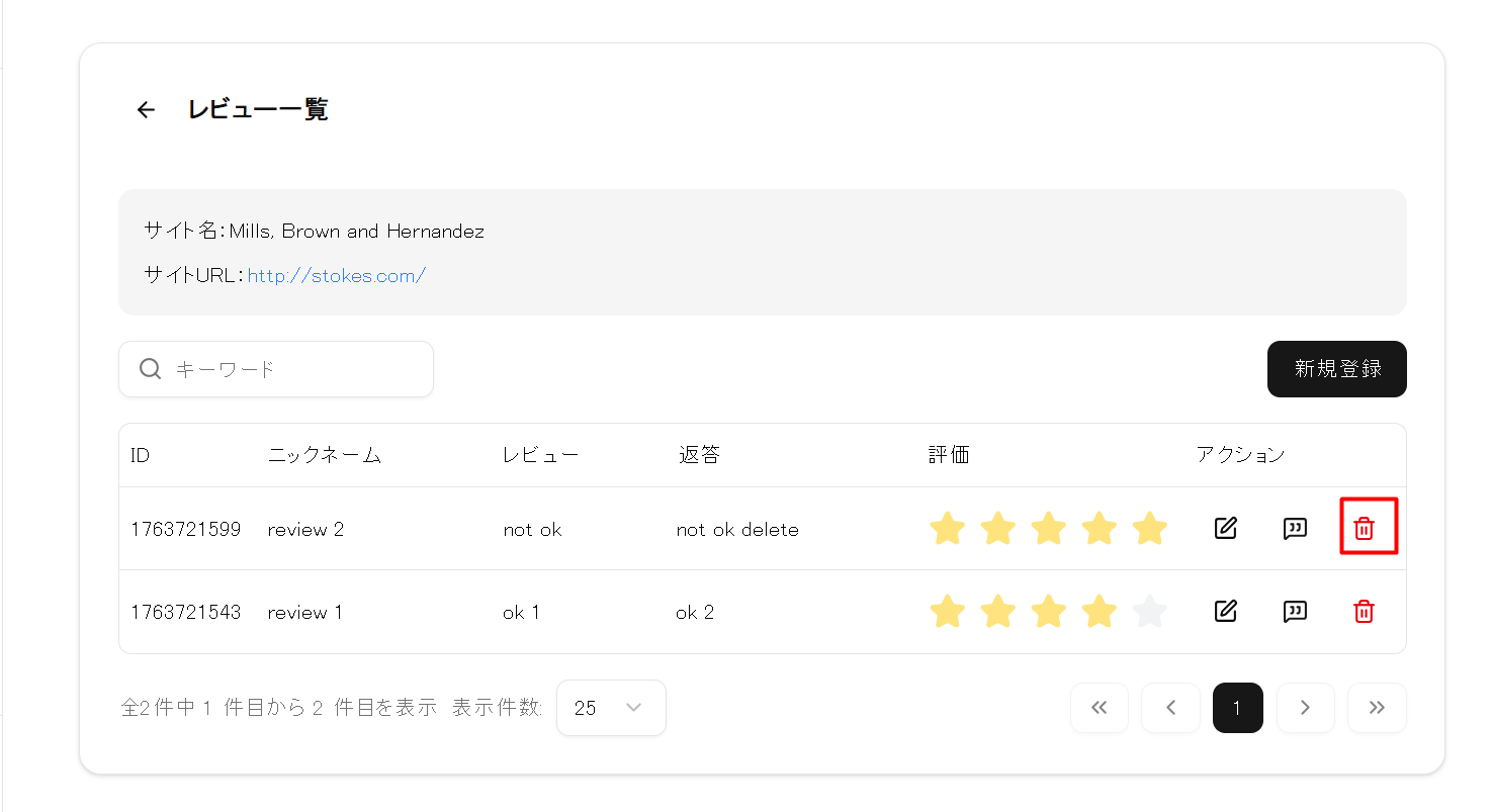 -Mong muốn: khi user click delete và confirm => thực hiện xóa và không còn hiển thị review trên list tại màn hình レビュー一覧