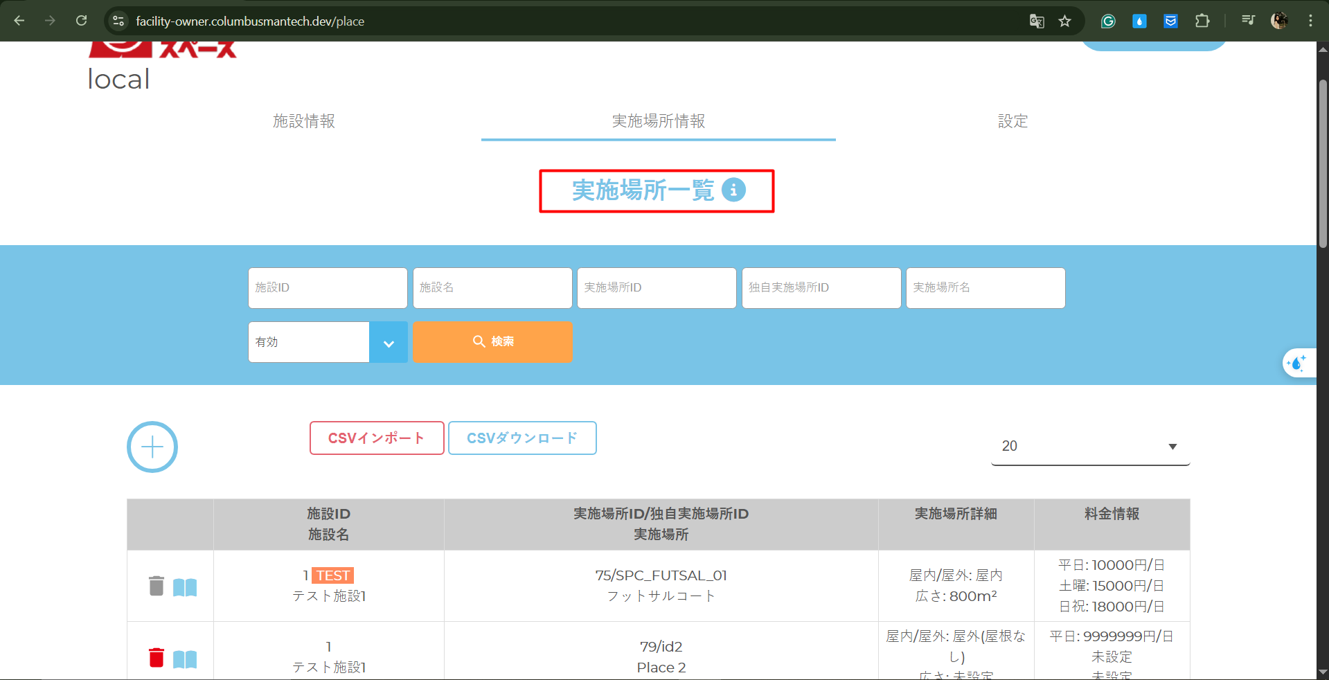 Sub account có thể xem, chỉnh sửa và thực thi chức năng 実施場所.