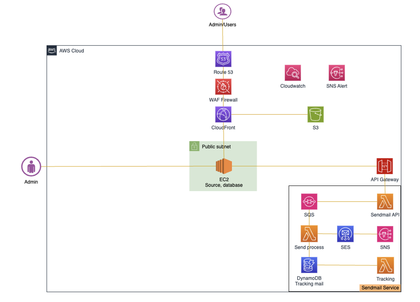 - infra structre ( cần dùng những service gì, liên kết giữa các service như thế nào)