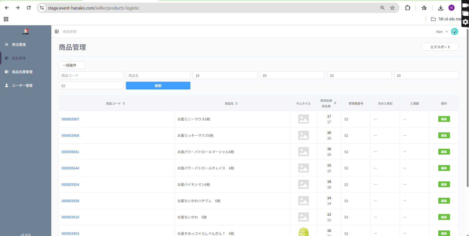 Step1: Tại màn hình product, search theo các điều kiện như hình