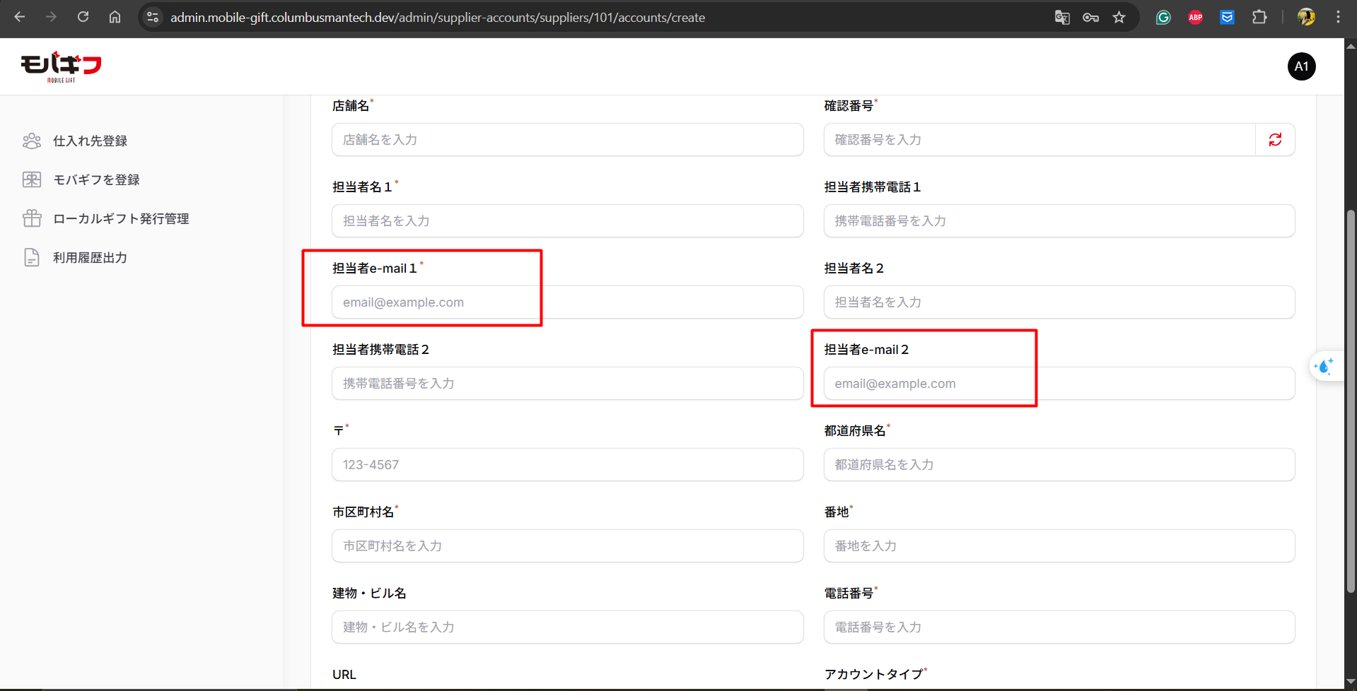 [Admin Site] [店舗アカウント登録] Field layout improvement