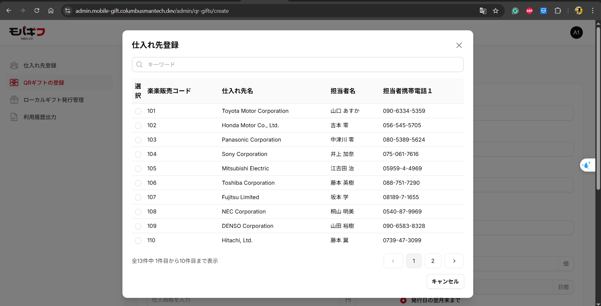 Chọn QRギフトの登録