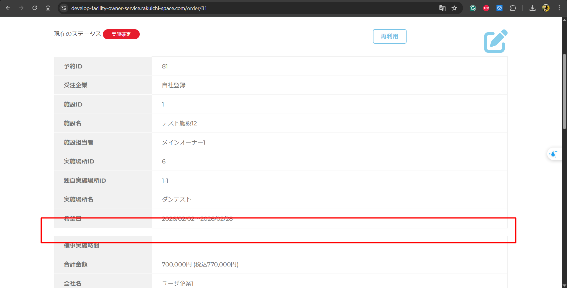 openHiển thị dòng trống giữa 2 field 実施場所名 và 希望日